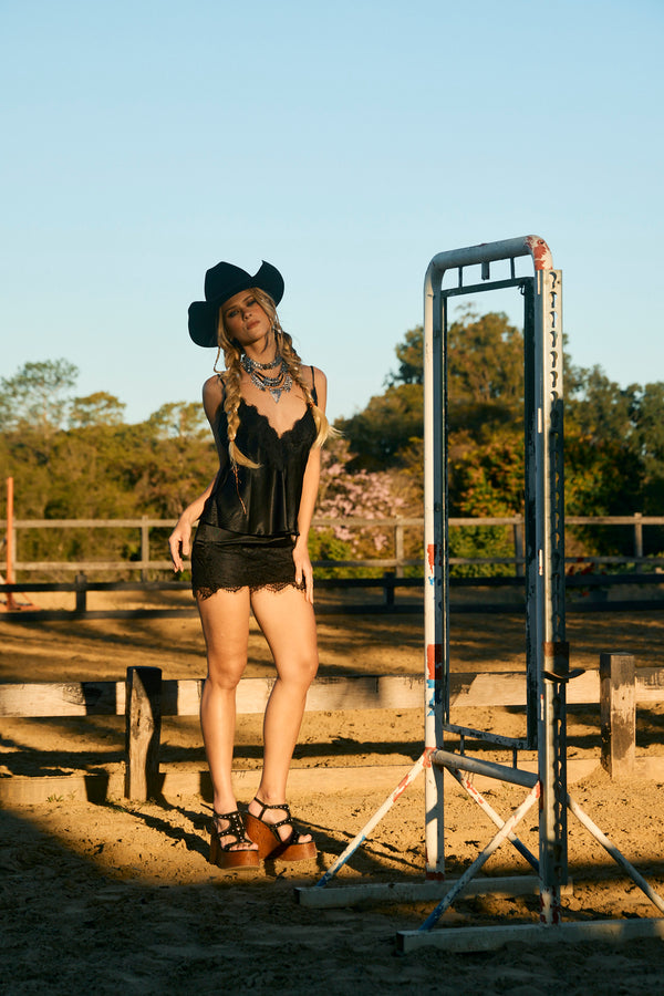 COLLAB CAMIDALP. A Saia Cetim Renda é confeccionada em cetim premium com aplicação de renda chantilly na barra. Possui cintura média, comprimento mini, cós com mini elástico embutido para conforto e zíper invisível na lateral. Shape justinho que valoriza a silhueta e combina perfeitamente...- R$339,90