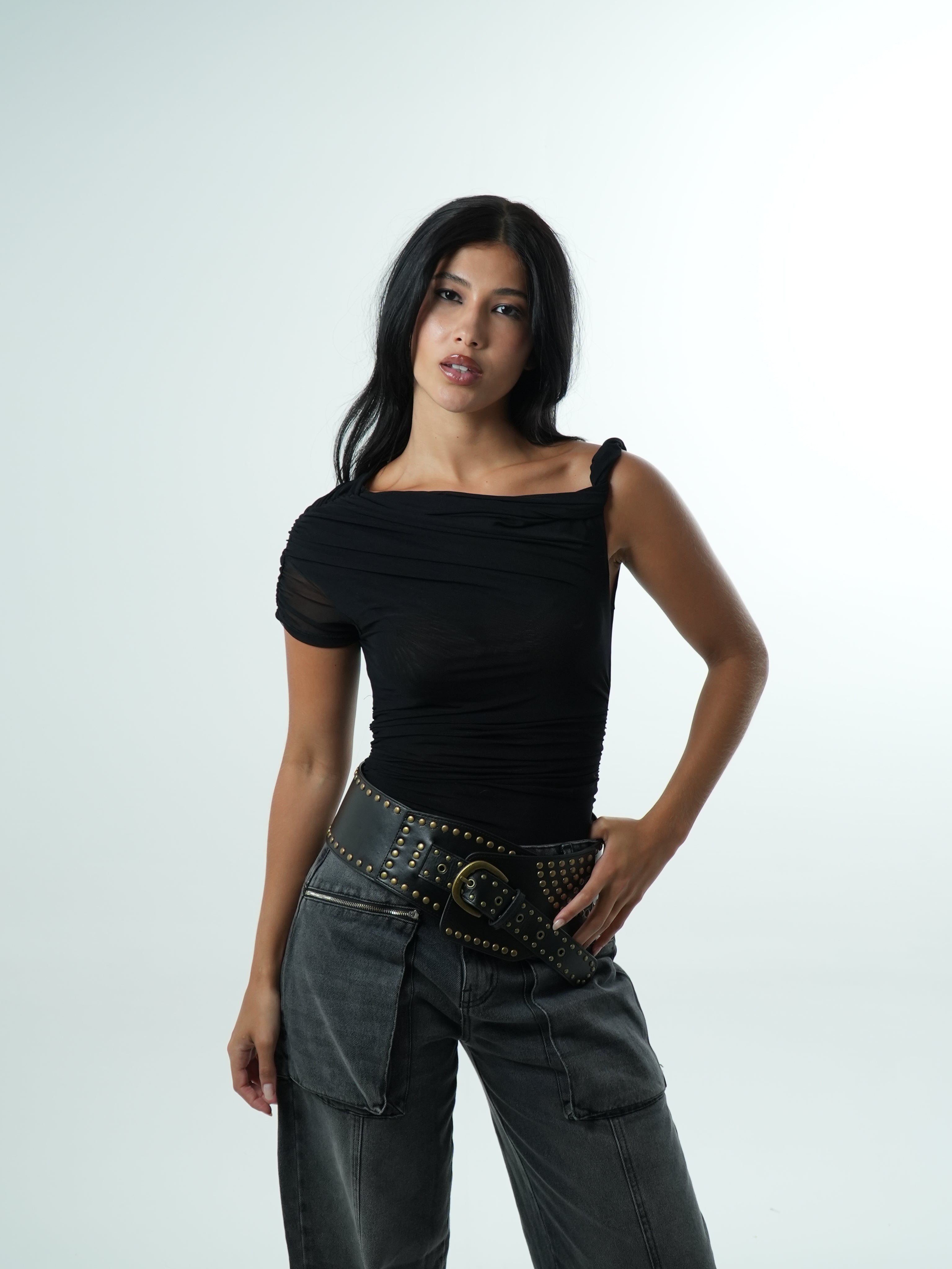 Asymmetric Tulle Bodysuit The not-so-basic basic piece that elevates any look! Made from double tulle, the Asymmetric...