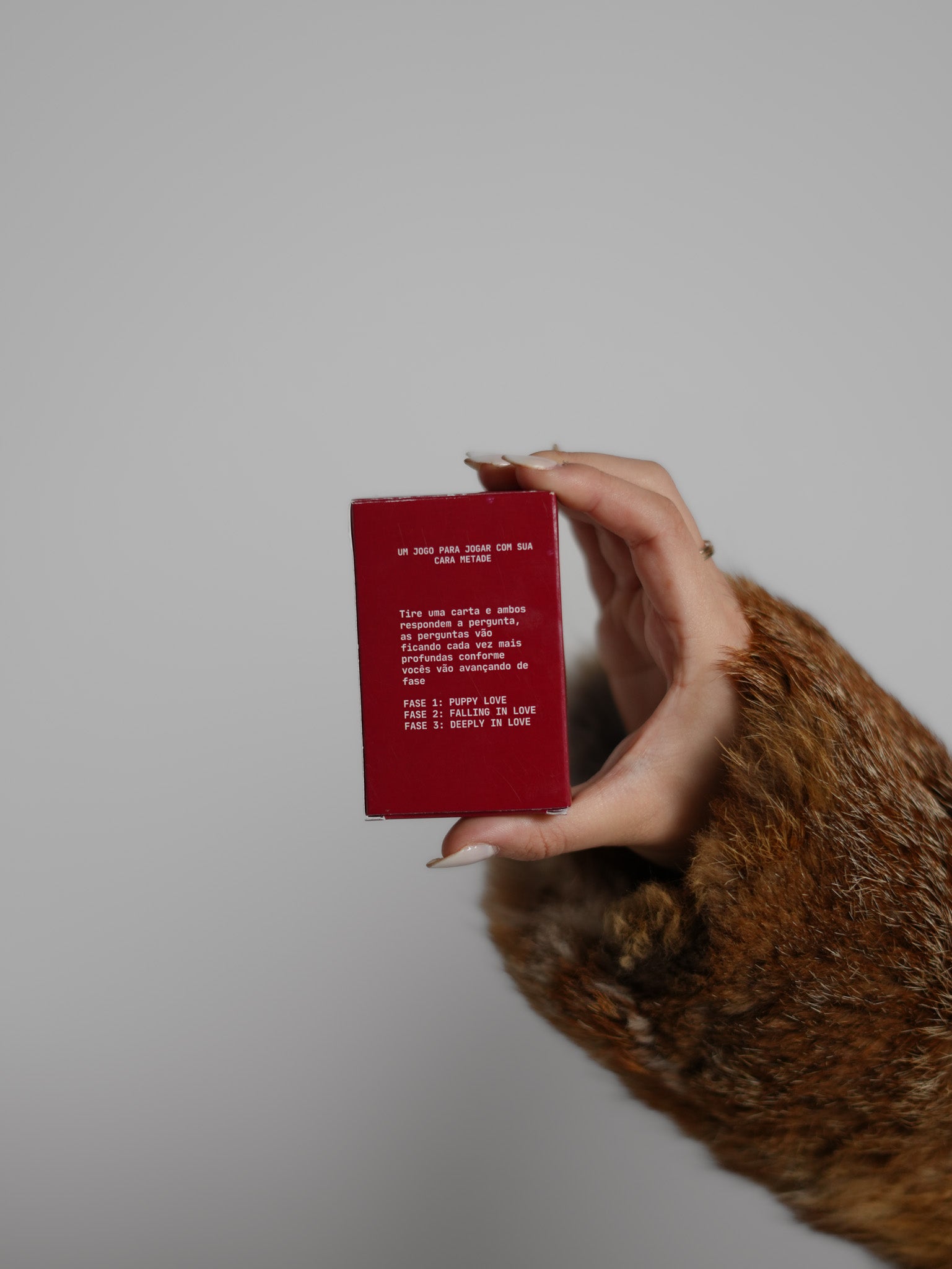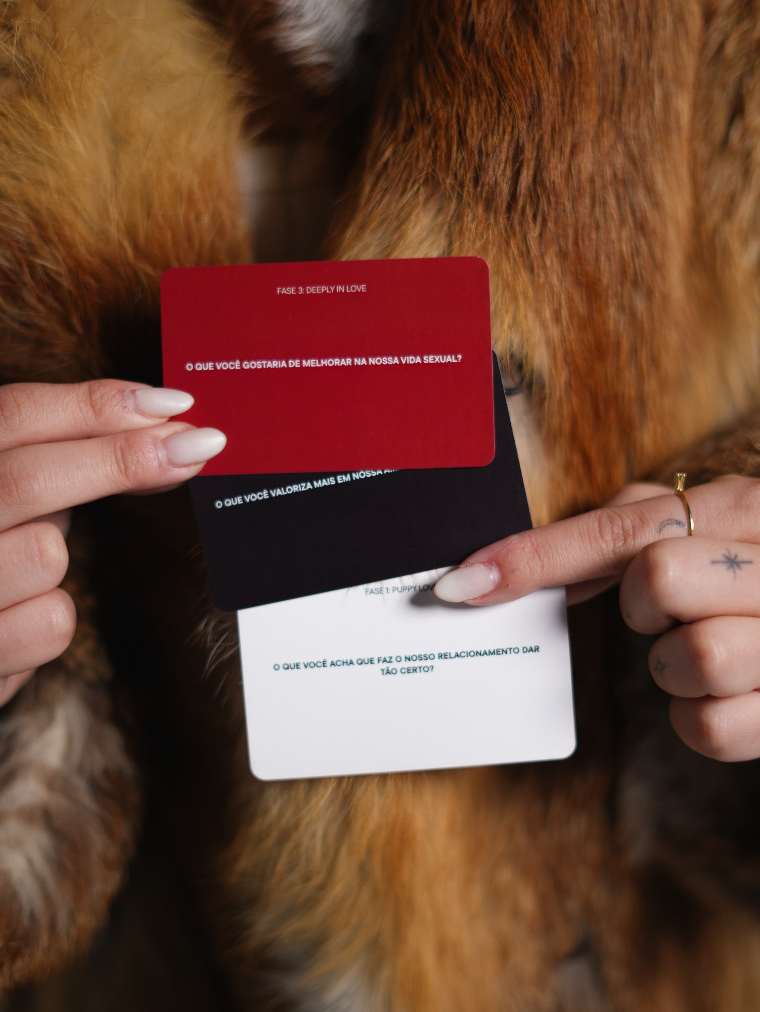 Pensado para duas pessoas, o jogo se desenrola em 3 fases, cada uma conduzindo a um nível mais íntimo de conexão. À medida que avançam pelas cartas, os jogadores mergulham em perguntas que vão do leve ao essencial; criando espaço para escuta, presença e verdade.