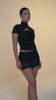 A Mini Saia Nuit é feita em tule e tem modelagem ajustada ao corpo, destacando as curvas com elegância. O grande destaque da peça é o torcido frontal, que cria um efeito de drapeado orgânico — como se a saia se moldasse naturalmente à silhueta, valorizando o quadril e criando textura.