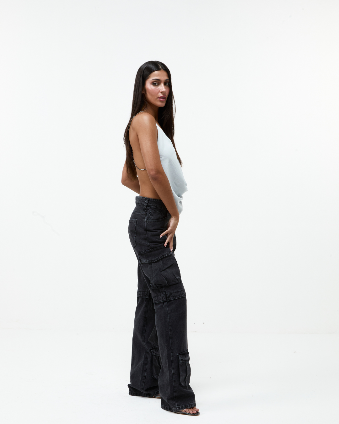 A nova versão da calça cargo star conta com pedrarias de cristais pretos fixadas uma por uma na calça! é simplesmente icônica demais besties