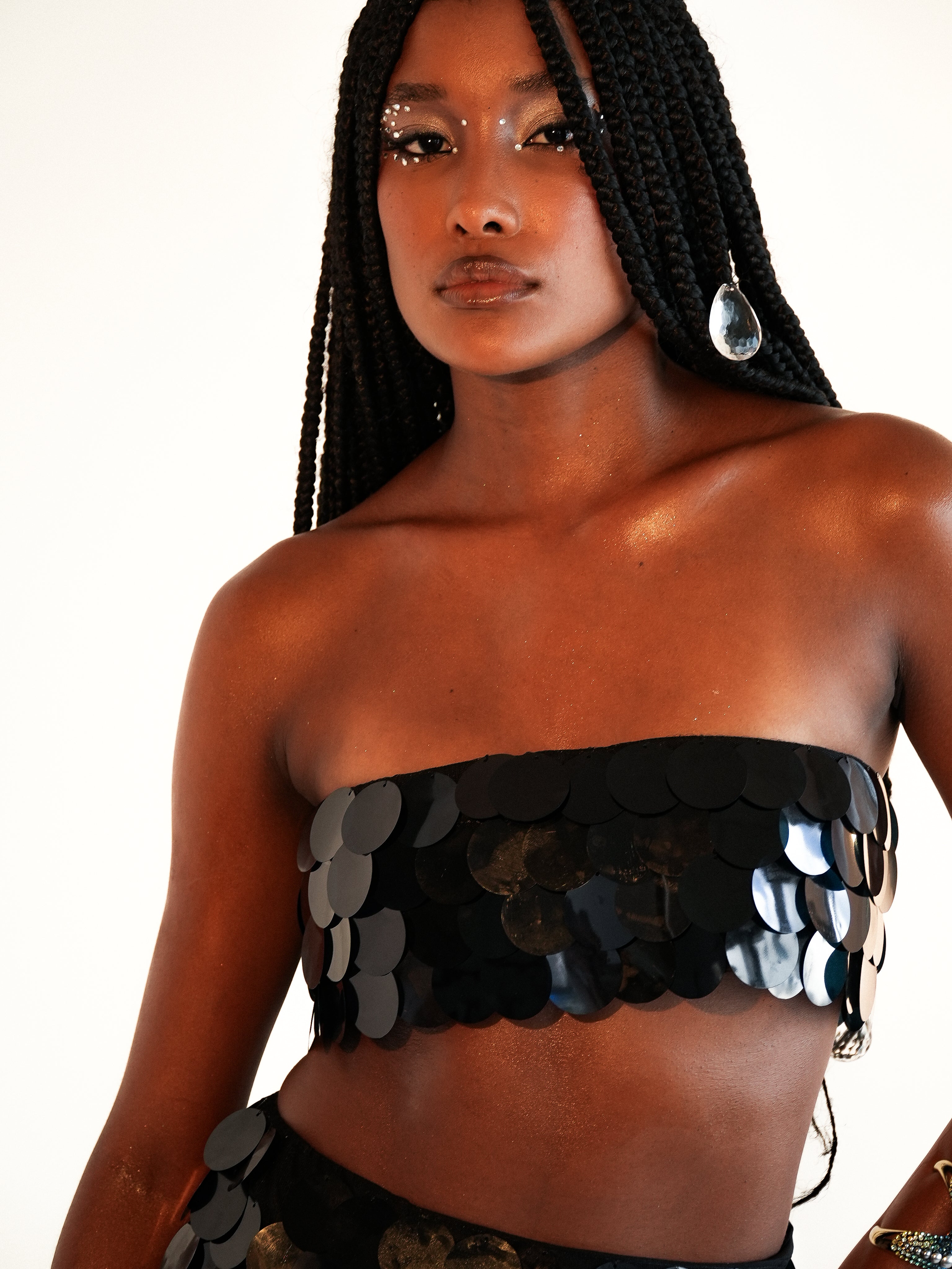 Sequin Mini Maxi Skirt made of sequin fabric in maxi size guarantees a surreal and super different...