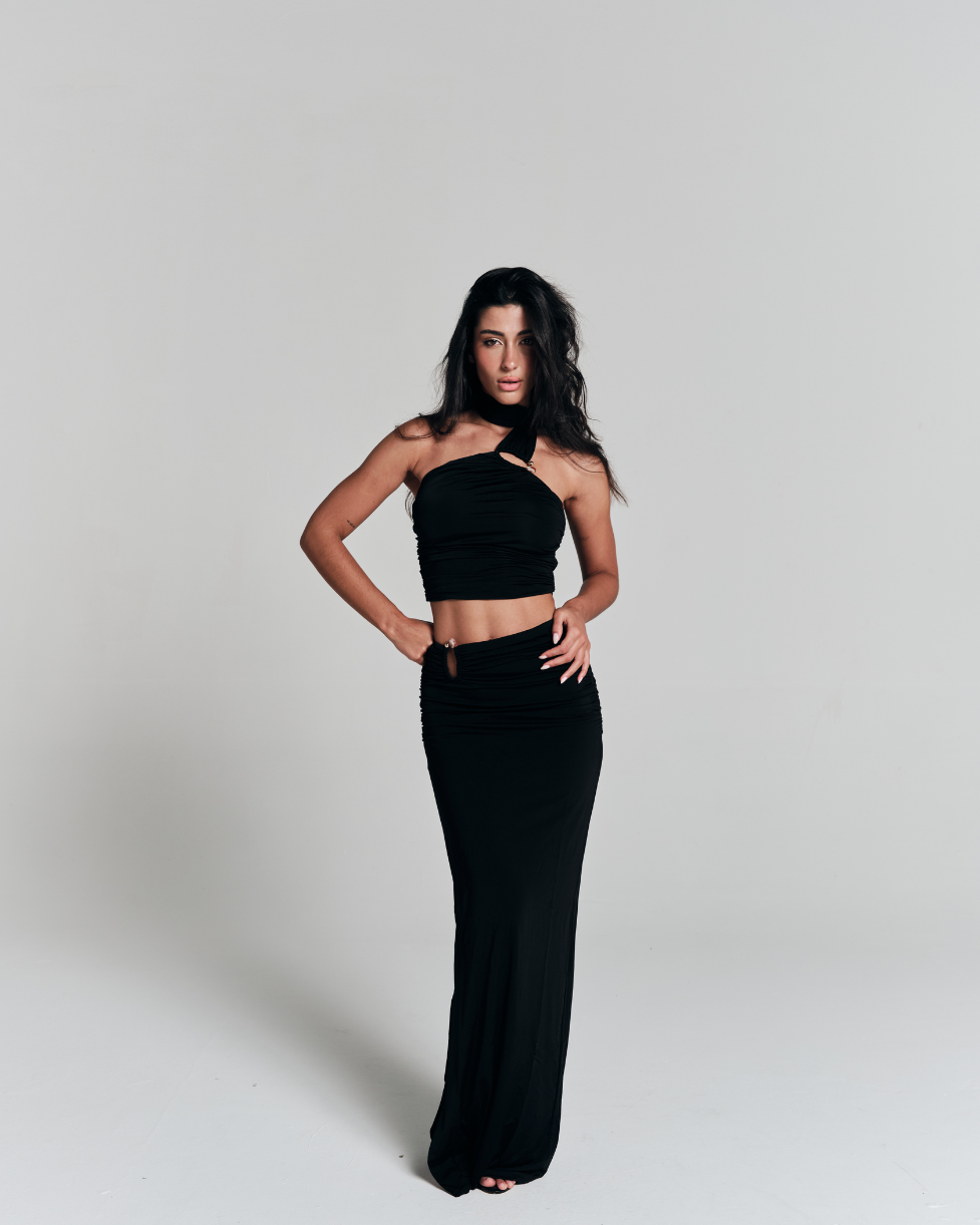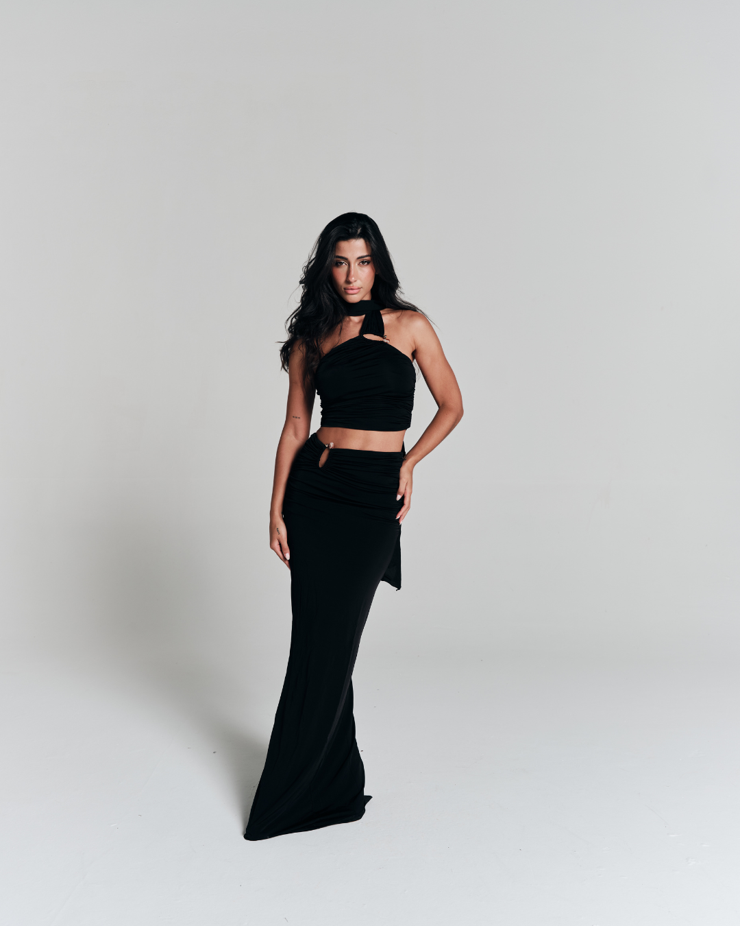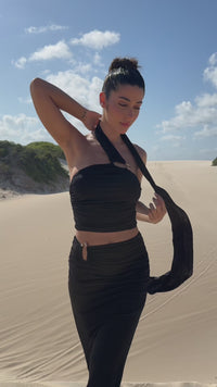 A Blusa Amarração Preta é pura atitude em forma de peça. Feito em poliamida, tem toque leve, caimento justo e drapeados que desenham o corpo com naturalidade.