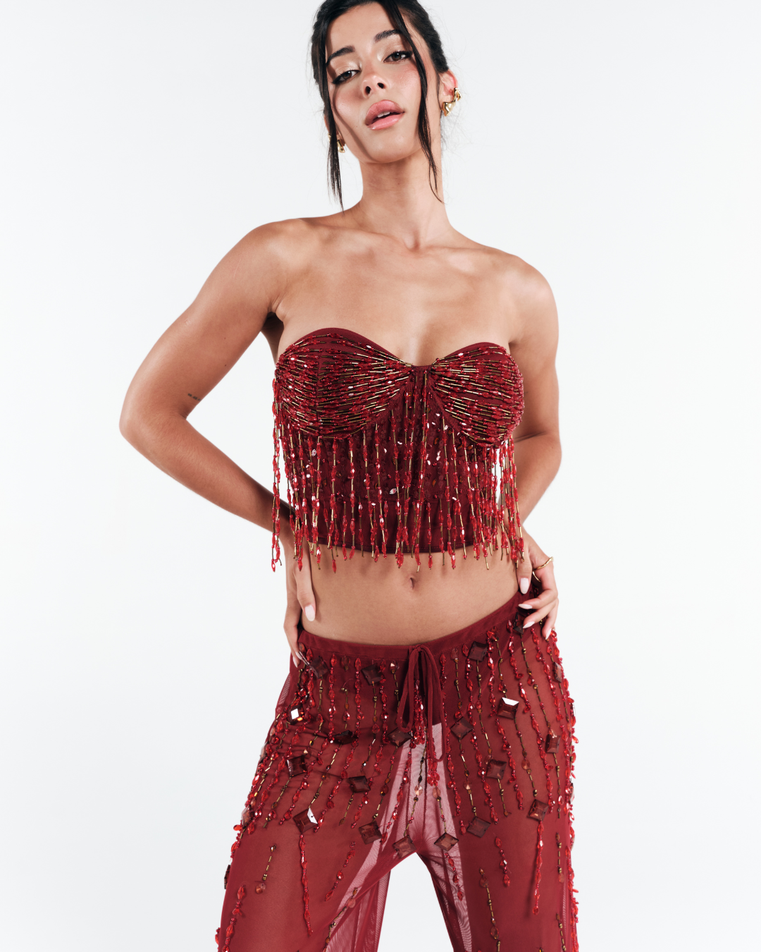 PRAZO DE POSTAGEM: 12 DIAS ÚTEIS. A Calça Bordada é feita em tule vermelho, com modelagem ampla, caimento...