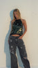 Funciona tanto em looks noturnos quanto em produções mais ousadas com paetê, renda ou transparências, sendo um jeans pensado para acompanhar peças de destaque.