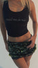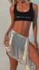Na parte frontal, a frase “Meet me in Rio” é aplicada em strass tip cristal prateado