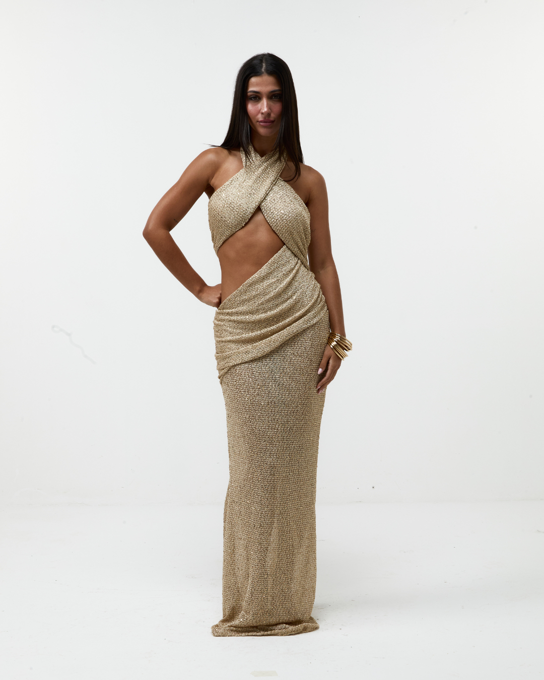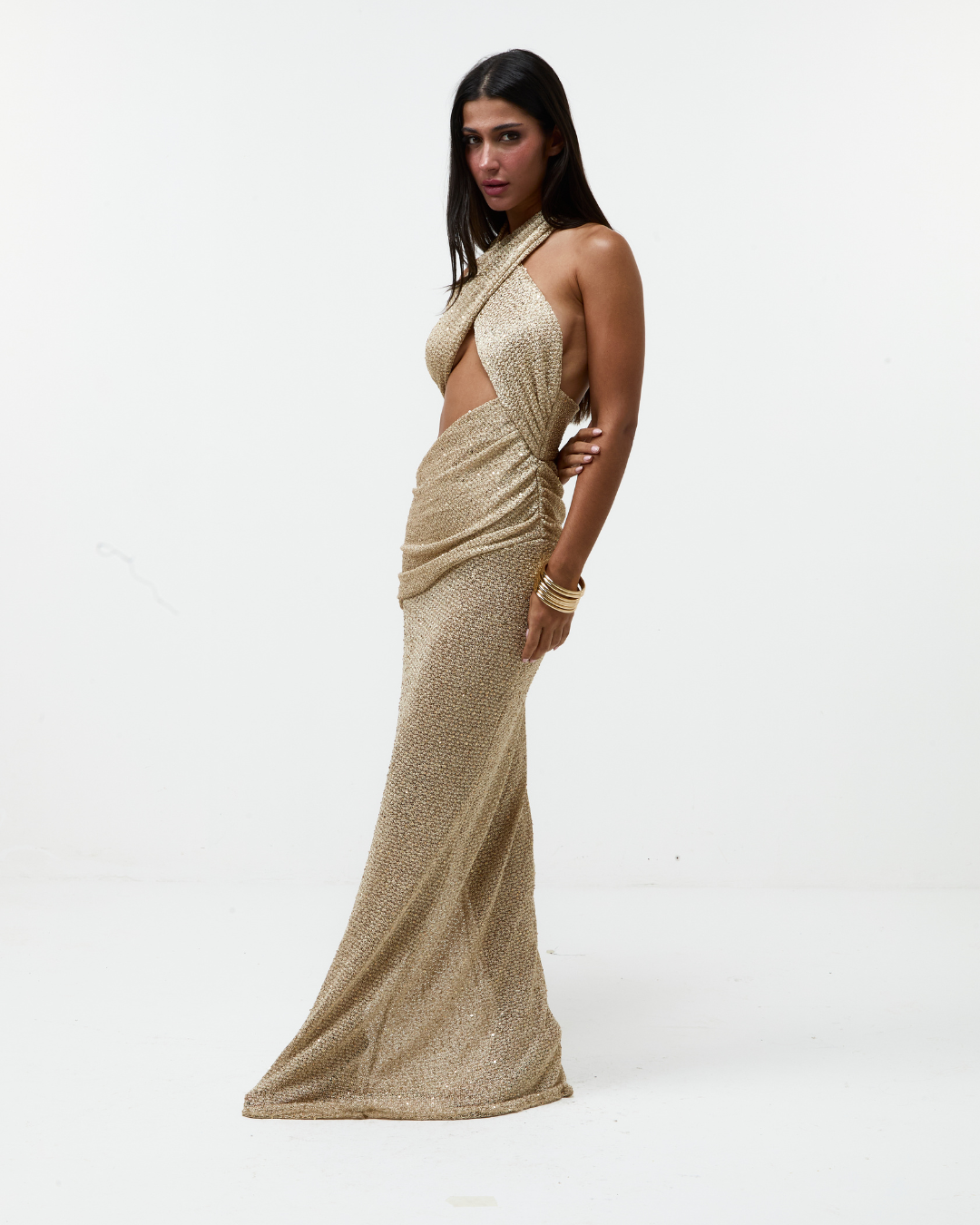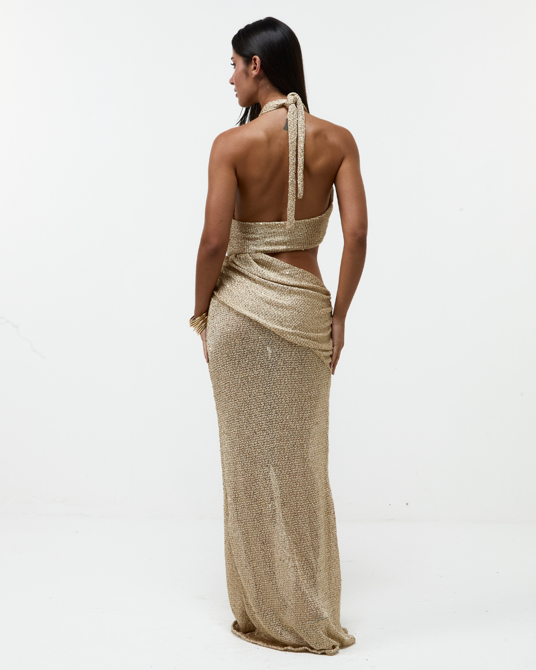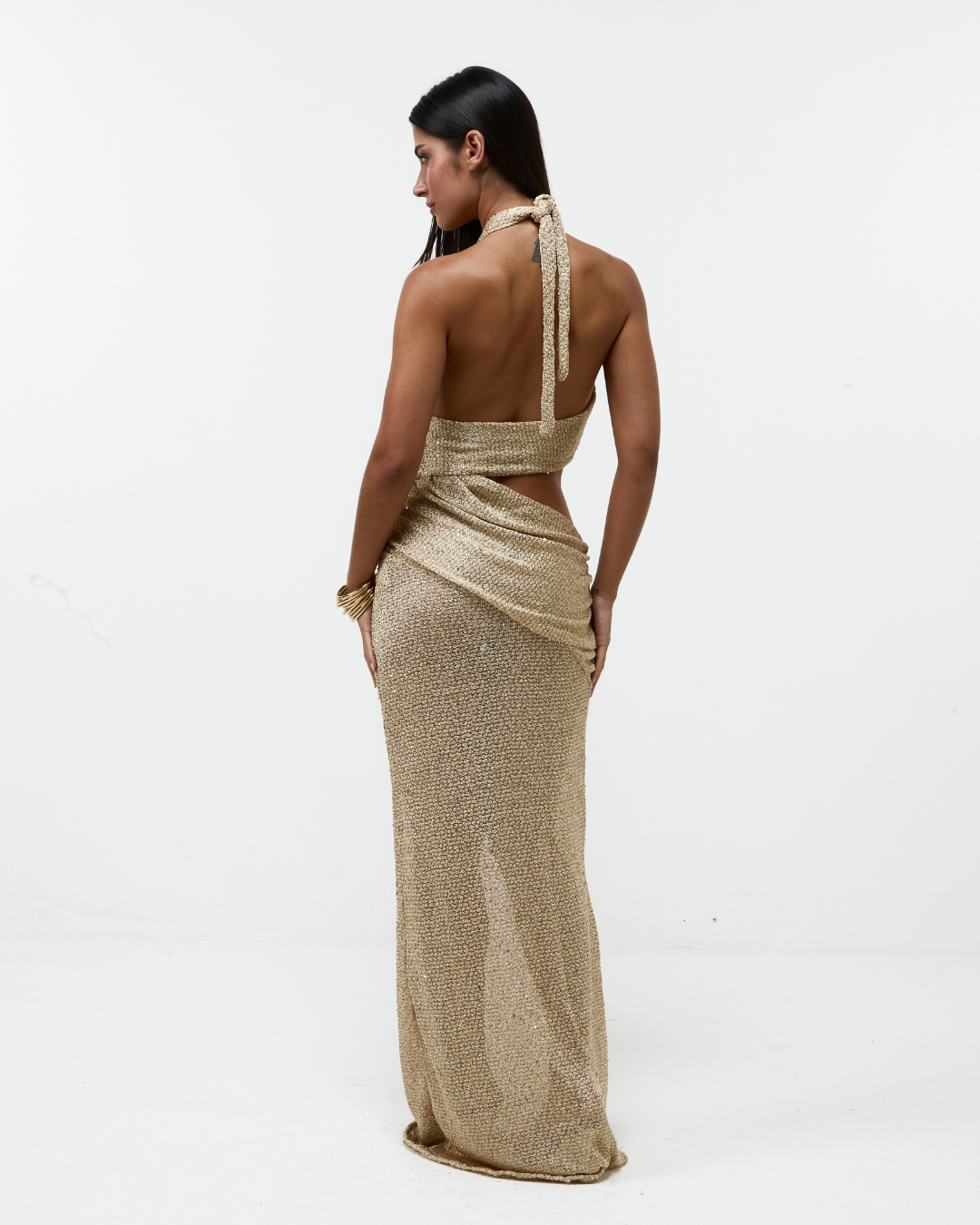 Vestido Longo Shimmer Mesh é confeccionado no tecido mais maravilhoso de todos! O tecido imita uma trama...