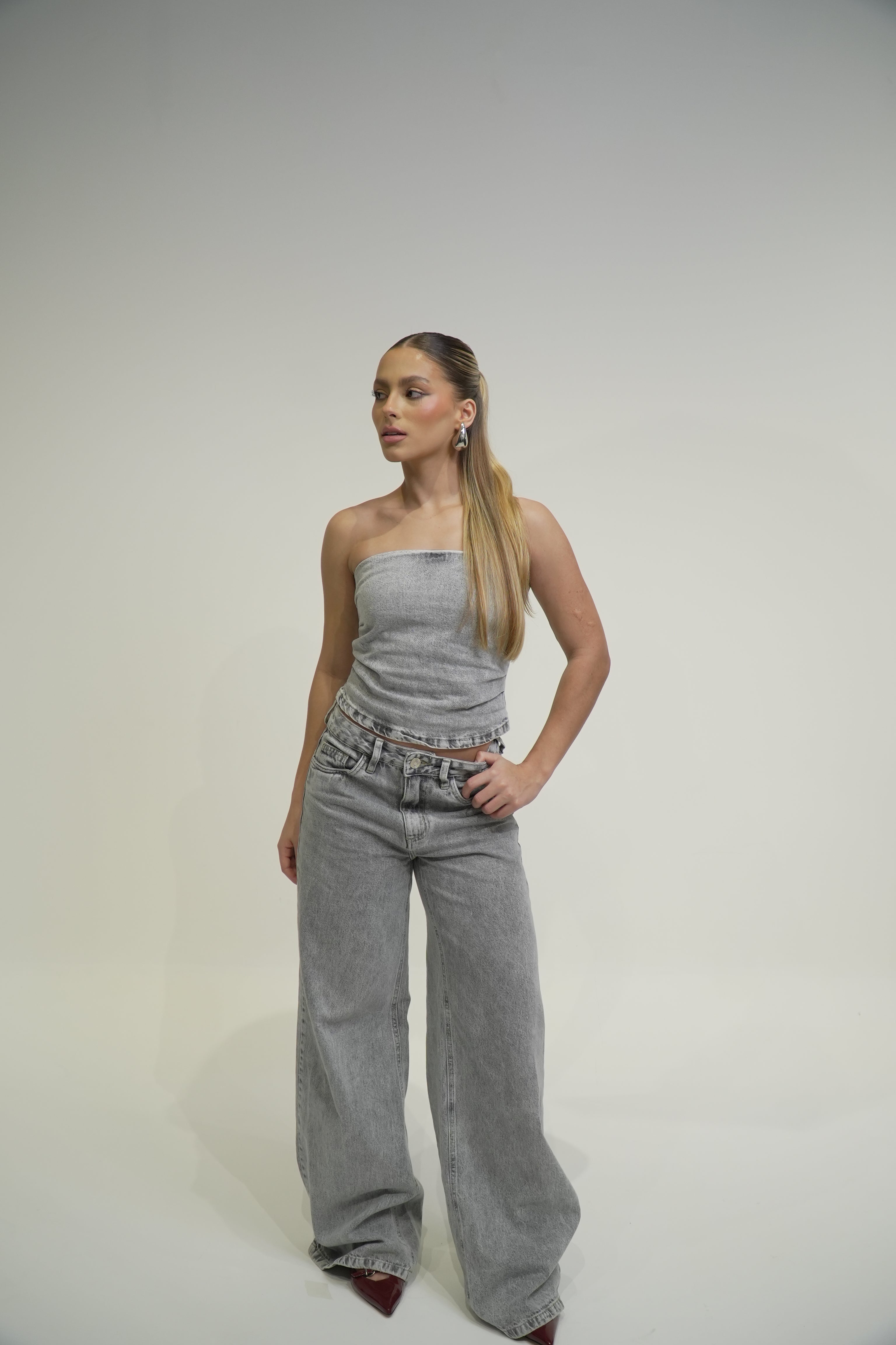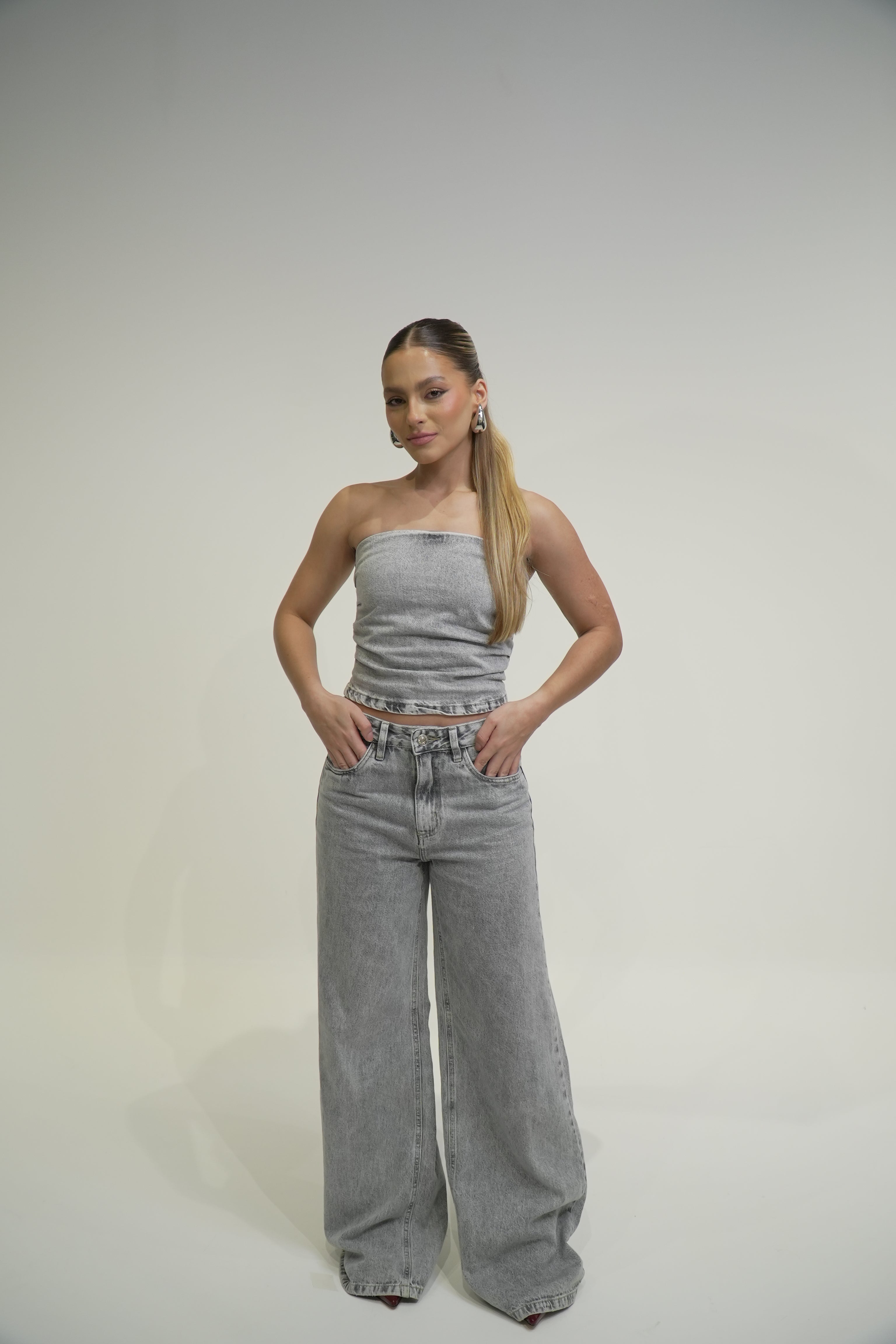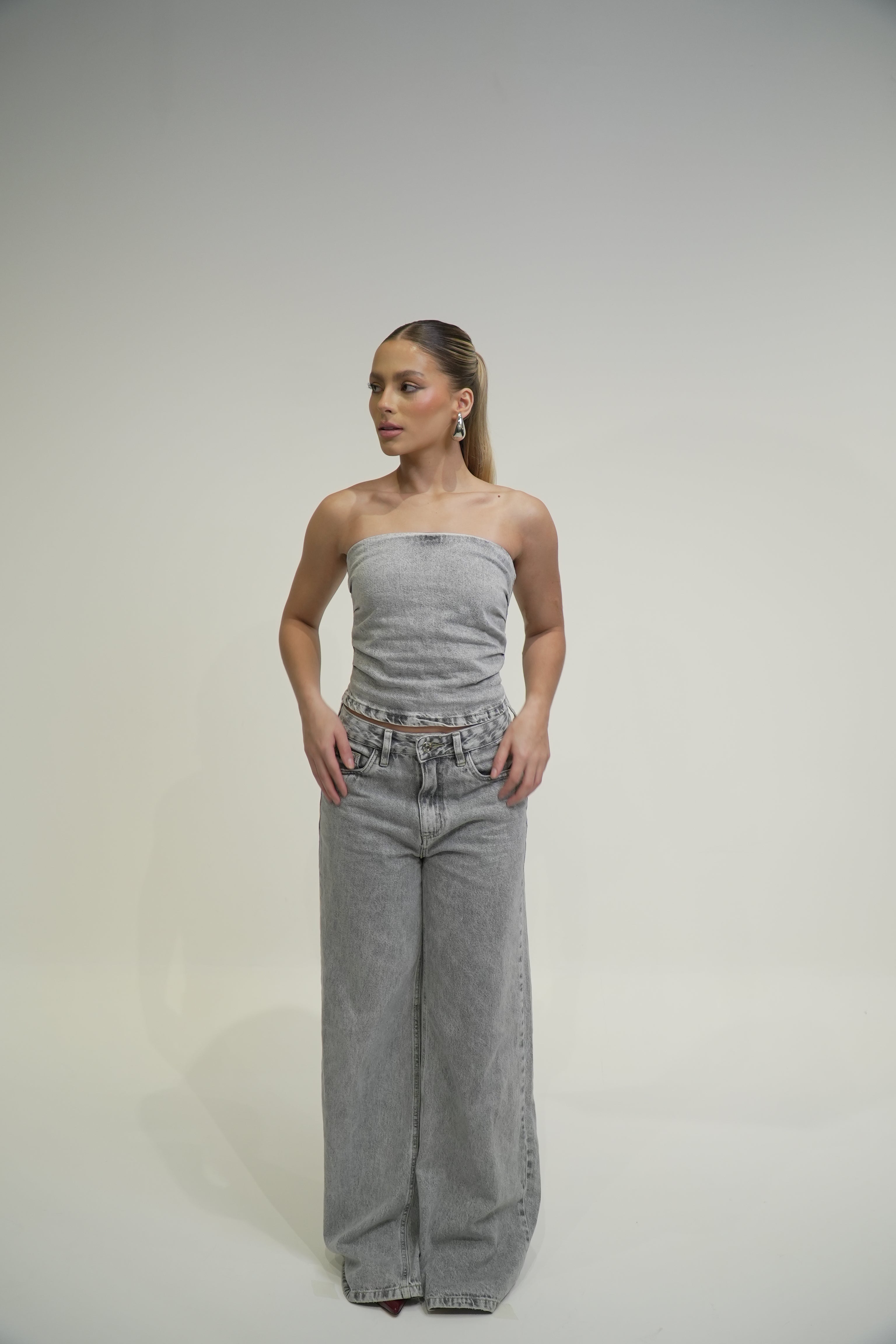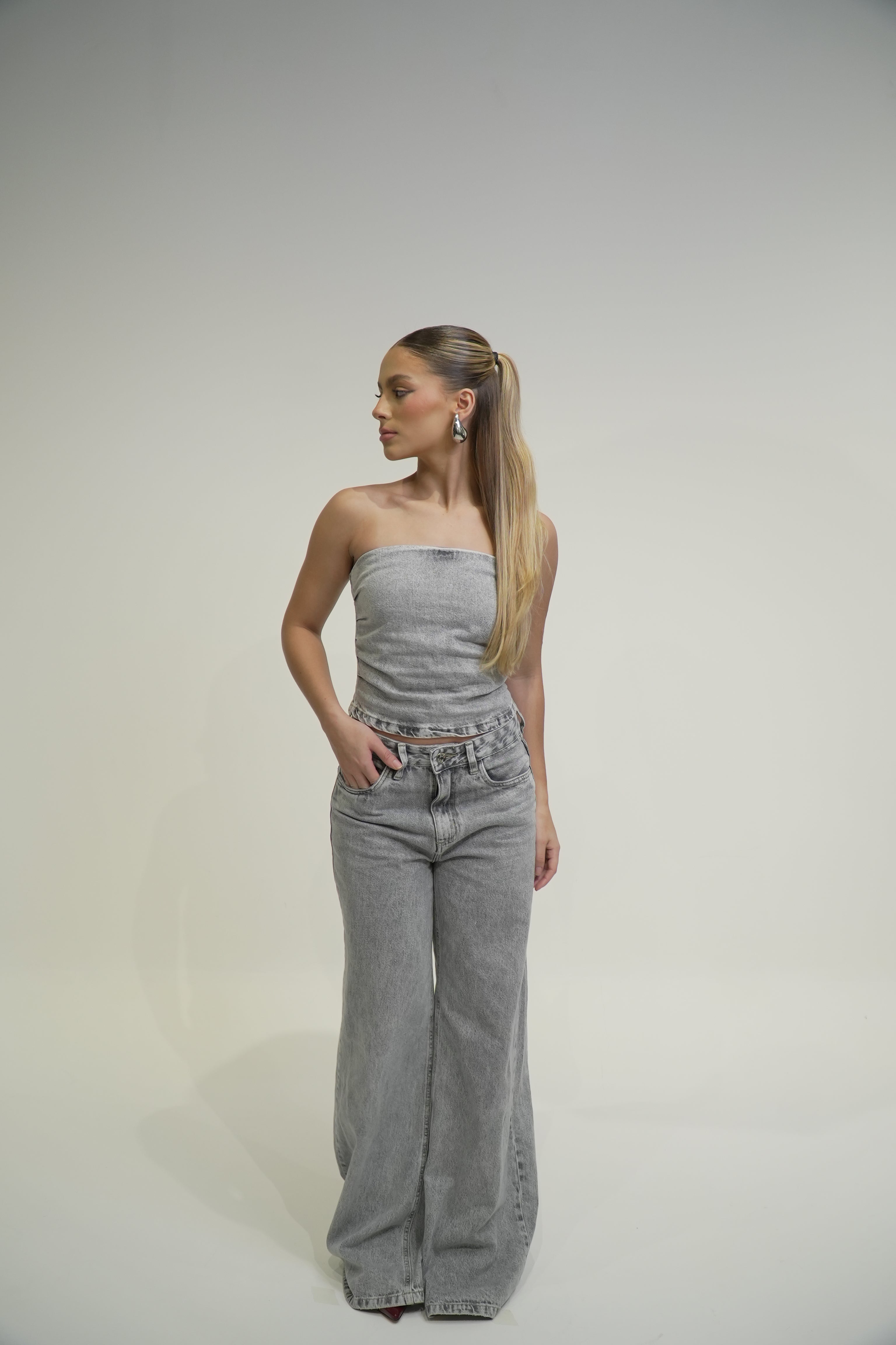- Corset Jeans em lavagem cinza mescla