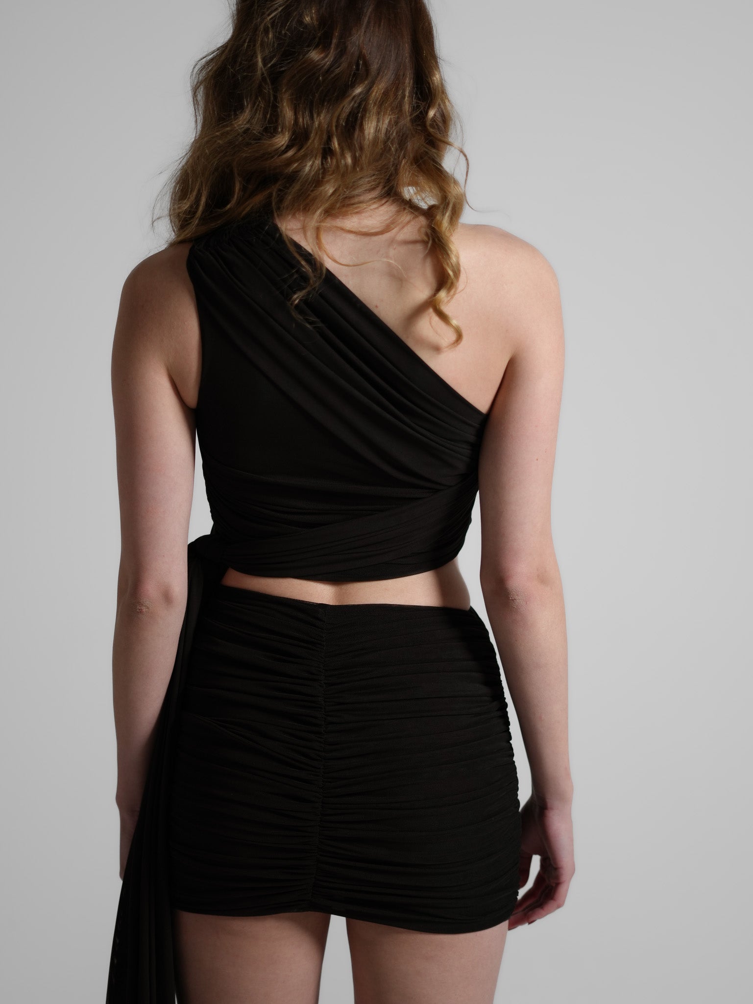 Mini Saia Tule confeccionada em tule com forro, tem comprimento curto, shape justinho e detalhe de franzido...